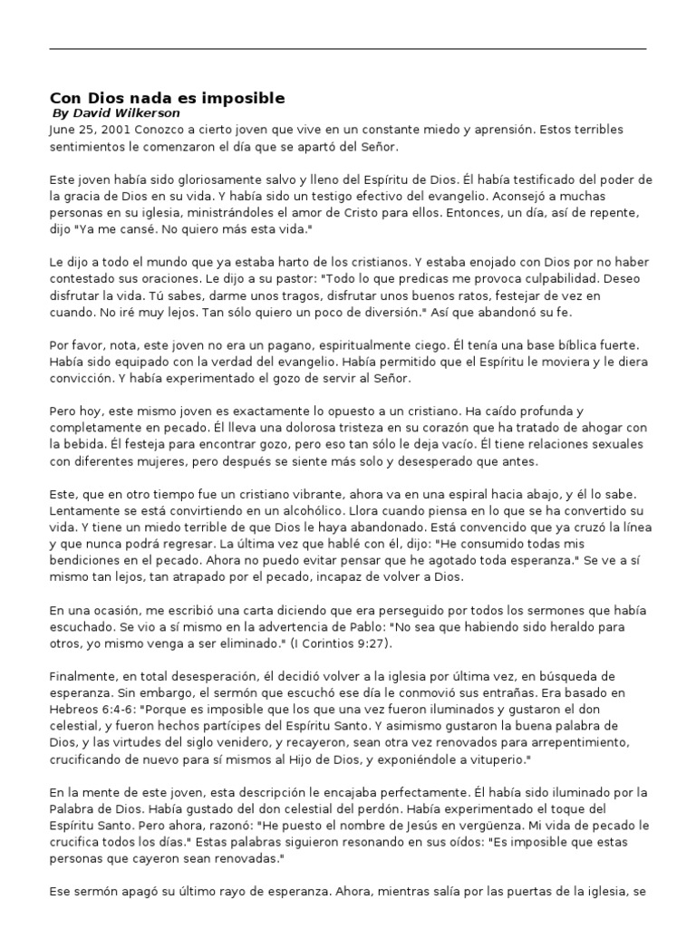 Con Dios nada es imposible: By David Wilkerson | Pecado | Jesús